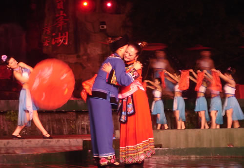 姑娘出嫁,為女人一生中最大的喜事,本應(yīng)充滿幸福、歡樂的氣氛。然而,舊時(shí)湘西、湘南、鄂西、川西(成都等地)、黔東(銅仁、凱里一帶)諸地,卻流行著一種與之完全相反情調(diào)的古老婚俗——“哭嫁”。也就是在姑娘“出閣”之前,不但新娘本人哭得很傷心,像淚人一般;而且,新娘的母親、姐妹以及姑媽、姨媽、舅媽及其他交往較多的女友,都要陪著新娘哭。湘西土家族哭嫁的風(fēng)俗尤為普遍、濃厚,不但哭嫁的時(shí)間較長(少則十來天,多達(dá)個(gè)把月),而且哭嫁歌也保存得古樸、完整。 姑娘出嫁為什么要哭?哪有那么多的東西可哭?這是一種蘊(yùn)含甚為豐厚的人生禮俗,也是一種饒有興趣的婚俗事象。 俗話悅:“人不傷心不落淚!惫媚锍黾拗砸,是因?yàn)樵谂f式婚姻制度下,女孩(尤其是勞苦大眾家庭的女孩)總是作為犧牲品“拋”(賣)給夫家的,她們的身心受到極大傷害。因此,湘西等地的女孩在出嫁之前要哭泣,要呼號(hào),哭嫁歌就是感情發(fā)泄的最好表現(xiàn)方式。 哭嫁的源起 哭嫁的風(fēng)俗,不知道起源于什么時(shí)候。戰(zhàn)國時(shí)期,趙國的公主嫁到燕國去作王后,她的母親趙太后在臨別時(shí)"持其踵,為之泣,祝曰,必勿使返。"大約就是后來長盛不衰的哭嫁風(fēng)俗的濫觴了。 這種風(fēng)俗,直至清末還盛行于四川農(nóng)村中,隨地區(qū)變化而大同小異。解放前,聽老人們說,早些時(shí)候,沒有嫁而不哭的人家。如果出現(xiàn)嫁而不哭的姑娘,也會(huì)被鄰里看作沒有教養(yǎng)的人,傳為笑柄;相傳有出嫁姑娘不哭而遭母親責(zé)打的事,這位母親當(dāng)然算得上是入流導(dǎo)演了。 舊時(shí)宣講故事中,有花轎臨門,父親強(qiáng)令哭《迎風(fēng)罵媒歌》的情節(jié),可知哭嫁是有歌詞的,帶有表演性質(zhì),原是用來渲染氣氛,以悲襯喜;不過,因?yàn)榛橐鍪前k的,真哭真罵的也不會(huì)少。 抗日戰(zhàn)爭后期,風(fēng)氣較開,哭嫁之風(fēng)已不盛行,而老人們卻還在津津樂道,哭的方式是,從婚期前一個(gè)月的首日起,入黃昏,姑娘訴哭約一個(gè)小時(shí),其聲嗚嗚。十天以后,她的母親加入"陪哭";又十天以后,她的祖母加入陪哭。這家沒有諸姑姊妹,人們說,如果有的話,也應(yīng)當(dāng)加入陪哭行列的。 哭嫁在川西叫"坐堂"。清代吉道人《味蔗軒隨筆·坐堂詞》云:"婚姻之禮,各省風(fēng)俗不同。然酌禮準(zhǔn)情,各省亦大同小異。凡男家娶婦先賦之詩,謂之'催妝';女家親串頌女之詞,謂之'坐堂'。坐堂者,女當(dāng)喜期將近之先數(shù)夕,其諸姑伯姊,置酒為女祖餞,各述吉祥之詞,以為頌美,女則申己之意以答。女左右更有少女,則隨而嫻習(xí)者也。其詞要多鄙俚,然有音韻凄清,風(fēng)格遒勁,如古歌古謠者。羅江明府蔡,微服巡查鄉(xiāng)里,一日行至某處,值有女子歸,諸娣姒咸以諛詞頌女,女申意以答。忽風(fēng)吹句入耳,詞曰:'鳳凰落在桌子上,哪個(gè)女兒肯離娘'。一字一轉(zhuǎn),音韻凄其,誰謂天籟之鳴,不在愚夫愚婦耶!"云云。吉道人姓周名際唐,成都人。吉道人記得明明白白,可惜他只記了一句哭嫁詞,難窺全貌。好在舊時(shí)坊間叢刻中有《訓(xùn)女哭嫁》一種,可見一斑。這本小書的目錄有《閨聲哭》、《娘訓(xùn)女》、《嫂哭妹》、《哭爹媽》、《哭哥嫂》、《花轎到屋哭》、《哭叔爺》、《哭兄弟》、《哭外公外婆》、《哭舅爺》、《拜香火哭》等等,編次有點(diǎn)凌亂,似乎隨手所記,未經(jīng)文人之手。遙想《詩》十五國風(fēng)未刪之時(shí),大約也不過如此吧! 閨聲哭 娘聽后園鳥雀驚,要聽房中女兒聲。 我娘當(dāng)門苦葛藤,手攀苦葛訴苦情。 我娘苦情苦過了,女兒苦情才起根。 ............ 桔子開花葉子青,陽雀開聲我開聲。 新打銅盆才裝水,新打剪刀兩面青。 娘不開口我開口,娘不開聲我開聲。 當(dāng)門一根木蓮樹,目連樹上掛卷經(jīng)。 一本經(jīng)書背完了,未見我娘來開聲。 虧了我娘睡得穩(wěn),爹媽眼淚貴如金。 哭爹媽 月亮彎彎照華堂,女兒開言叫爹娘。 父母養(yǎng)兒空指望,如似南柯夢(mèng)一場(chǎng)。 一尺五寸把兒養(yǎng),移干就濕苦非常。 ............ 勞心費(fèi)力成虛恍,枉自爹娘苦一場(chǎng)。 哭兄弟 黑漆茶盤烏木頭,姐姐離娘弟不留。 留到姐姐吃你飯,留到姐姐穿你衣。 兄弟當(dāng)家掙家忙,嫁了姐姐買地方。 上頭買齊潼川府,下頭買齊遂寧鄉(xiāng)。 ............ 這個(gè)本子所記是川北的歌詞,以前所見的是川南,吉道人所記的是川西,川東,大約也不會(huì)大異的。遺憾的是,該書所記哭嫁詞雖有"只怨媒人莫良心"等語,卻沒有列出"罵媒專目,大約是怕媒人太難堪了吧! 其實(shí),罵媒是哭嫁中必不可少的節(jié)目,也是最具反抗色彩的哭嫁歌詞。舊社會(huì),婦女無婚姻自由可言,由于"三從四德"的束縛,平時(shí)對(duì)于自己的終身大事幾乎不能置一詞,全由媒人和父母擺布;因此,這登花轎之前的"罵媒",便是難得的發(fā)泄機(jī)會(huì)。這早已反映在戲曲和民間說唱等藝術(shù)之中。 以前,川劇《柳蔭記》有《英臺(tái)罵媒》一折,英臺(tái)罵媒人,言詞激烈,聲色俱厲,充分表現(xiàn)了祝英臺(tái)剛烈的性格和反封建精神。她罵道:"提媒婆,更恨她,胡言亂語嘴喳喳......唯愿你,房屋遭火化,田園水推沙。"但這場(chǎng)戲現(xiàn)在卻被刪掉了,五六十年代還有的,全國第