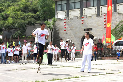 張家界高花燈亦稱高皇燈,是流行于永定沅古坪一帶富有民族特色的舞蹈。表演時(shí),12人至24人不等。配有鑼、鈸、嗩吶、鼓等樂器。每人手中拿一盞紙?jiān)鸁艋\,內(nèi)點(diǎn)蠟燭兩根,頂扎一木偶像,用五色紙剪成戲文故事如“八仙” 、“瓦崗寨”,“梁山英雄 ”之類。高花燈表演有一套程式,要求東起西落,進(jìn)一個(gè)“半邊月”,出一個(gè)“月團(tuán)圓”,舞個(gè)“太極圖”。亦可進(jìn)民房表演,叫“愿燈”,多為祝福、還愿或?yàn)槟臣蚁彩聹惾ぁ4蜻汉、打口哨則只能到戶外表演,叫“眾燈”,是讓大家看的。其形式又分民燈、戰(zhàn)燈。前者表演 古代先民的遷徙、繁衍、勞動(dòng)、生活;后者表演打仗破陣。隊(duì)形變化有“織籬笆”、滾柱頭”、“十八斗”、“螺螄轉(zhuǎn)頂”、“八卦陣”、“過天星”、“一字長(zhǎng)蛇”等二十余種。如破“象棋盤陣”,主人插三十二根香,擺成棋盤陣,表演時(shí),主人舉紅傘,玩燈者舉黑傘,從河道進(jìn),將眾“子”一一吃掉(即踩香),這是斗智的競(jìng)賽。只見燈火如流星般穿插舞蹈 ,旁邊配以龍燈互舞(配龍玩燈,是高花燈的主要特點(diǎn)之一),那激起的鑼鼓聲、吆喝聲、口哨聲,掀起有節(jié)奏的聲浪,熱烈而歡快。 張家界高花燈發(fā)祥于張家界市永定區(qū)沅古坪鎮(zhèn)等地區(qū),與沅古坪地區(qū)接壤的沅陵、桃源、慈利等周邊區(qū)縣也有少量玩高花燈的習(xí)慣。 高花燈的燈代表著光明幸福,12個(gè)燈表示12個(gè)月,月月平安無事。每年春節(jié),每個(gè)村寨都要操練一班高花燈,辭舊迎新。制作時(shí),藝人用竹篾和紙?jiān)?2或24個(gè)燈籠,在燈籠下加上一個(gè)長(zhǎng)柄燈托,并在燈籠上扎上五顏六色的“故事”,如“八仙”、“耿氏送子”等。夜晚,在燈籠里點(diǎn)上木油臘燭,一人舉一個(gè)燈籠,邊舞邊組成多種隊(duì)形。一眼望去,流光閃爍,尤如銀河戲舞。 張家界高花燈不但為本鄉(xiāng)本土的觀眾所喜愛,而且受到海內(nèi)外朋友及國(guó)際友人的高度贊賞。因?yàn)樗侵袊?guó)古老的民間舞蹈代表,它以自成體系的記譜方法,延繼著中國(guó)舞蹈的血脈,以其悠久的舞蹈歷史和多元文化特征,被舞蹈界認(rèn)為是“中國(guó)舞蹈歷史上的活化石”,極具學(xué)術(shù)研究?jī)r(jià)值和很高的審美價(jià)值。已列入全省第一批非物質(zhì)文化遺產(chǎn)保護(hù)名錄。 高花燈相傳起源于東漢章帝初年,時(shí)“ 中蠻”覃兒健在澧水中下游舉義反漢,與漢軍“戰(zhàn)于洪下”(相傳為今大庸紅土坪,待考),洪下“蠻人”用火 把跳舞為義軍吶喊助戰(zhàn),終因漢軍勢(shì)眾,覃兒健與義軍全部戰(zhàn)死(至今留下懸鼓坪、御甲埡、扎營(yíng)山、烽火臺(tái)等古戰(zhàn)場(chǎng)遺跡)。以后,當(dāng)?shù)匦U人每年都必在過 后年(從正月初一至元宵節(jié))打火把集會(huì)跳舞, 栽“ 陽(yáng)樁”(土話栽跟頭),表示對(duì)“洪下之戰(zhàn)”的紀(jì)念 。久而久之,火把進(jìn)化成燈籠和扎人物事故,表演也 有一定規(guī)矩。至今,這種舞蹈藝術(shù)還保留著古老、原始、粗獷、豪放、悲壯的特色。 |