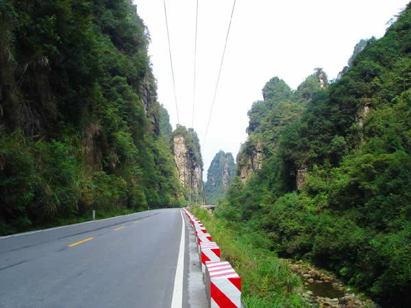 百丈峽圖片 百丈峽是武陵源風(fēng)景名勝區(qū)通往張家界市的公路貫通整個峽谷,因有堵高近百丈的石壁,直插云霄,不敢仰視,故而得名。據(jù)《慈利縣志》載,索溪峪右得百丈峽,峽長三十公里……又相傳向王天子起義軍與官兵在此先后博殺一百仗,依此又名百仗峽。明代九永兵備胡桂芳,一生好游歷山川,來到百丈峽后題寫了一首七言詩:“峽高百丈洞云深,要識桃源此處尋;戎旅徐行風(fēng)雪緊,誰將興盡類山蔭!笨逃趰{內(nèi)道旁石壁上。