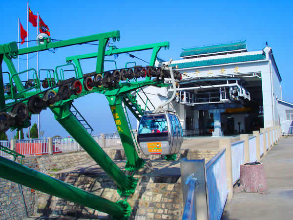 湖南武陵源索道有限公司成立于1995年12月7日,武陵源區(qū)人民政府和香港安達(dá)國(guó)際度假樂(lè)園(張家界)有限公司簽約,是由香港安達(dá)國(guó)際有限公司投資的外商獨(dú)資企業(yè)。1996年6月動(dòng)工興建天子山索道,1997年5月正式對(duì)外營(yíng)運(yùn)。天子山索道是單線循環(huán)式脫掛抱索器客運(yùn)索道,全部設(shè)備自?shī)W地利Doppelmayr公司進(jìn)口。設(shè)計(jì)水平線1960m,斜線長(zhǎng)2084m,兩端站高差692m。配單線自動(dòng)循環(huán)車廂41個(gè),每車廂載6人,運(yùn)速5m/s,每小時(shí)單向運(yùn)量900人。索道動(dòng)力電,采用雙電源;配備有應(yīng)急備用柴油機(jī),用于停電或發(fā)生設(shè)備事故時(shí)緊急疏散游客。