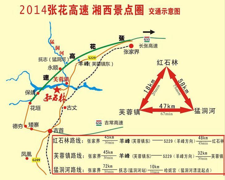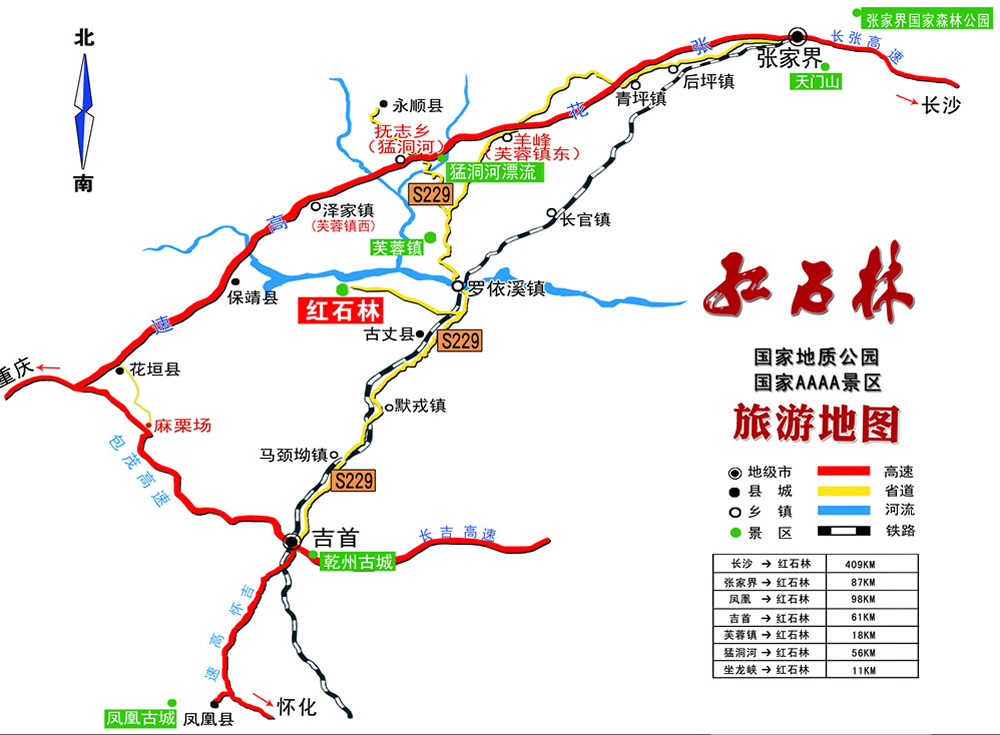 現(xiàn)在位置:張家界旅行社->交通指南->旅游地圖 -> 紅石林地圖—紅石林旅游景點交通圖片