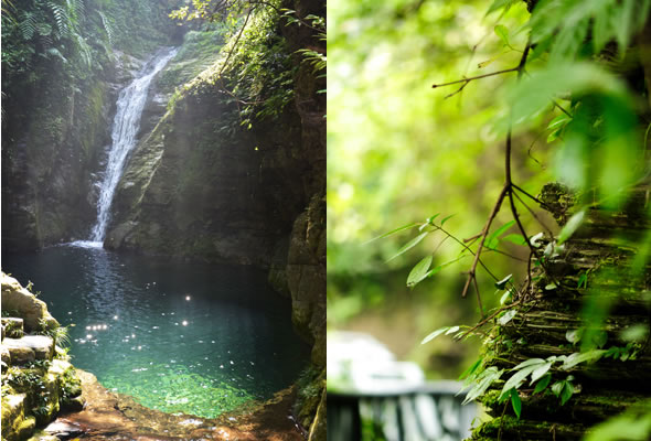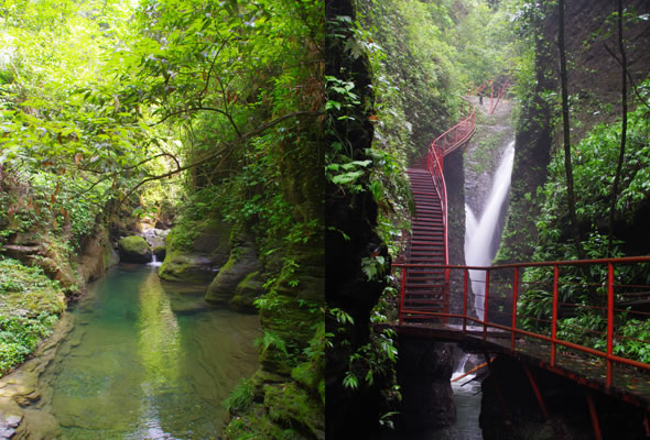 十八潭總名。稍作休憩,我們開始奔赴東線的景點(diǎn)。東線主要是以十八潭為主,下游有4潭:合潭、梳妝潭、魚潭、黑潭;中游有9潭:換衣潭、美人潭、石蛙潭、姊妹潭(3個(gè))、情侶潭(2個(gè))、二龍搶珠,上游有5潭:鬼谷神功(2個(gè))、幽潭、落銀潭(彩虹潭)、路邊潭。十八個(gè)潭深淺不一,淺則1米以上,深則4米左右,形狀各異,有的月牙形,有的豬腰狀,形狀不規(guī)則,石壁上水沖成潭,真是鬼谷神功,此處水質(zhì)細(xì)膩,加之綠林映襯,水色碧綠見底,猶如十八顆翡翠石鑲嵌在山林之間,涓涓溪流晶瑩剔透,飛流直下的瀑布,氣勢(shì)磅礴,蔚為壯觀, 下游的4潭,合潭、梳妝潭、魚潭、黑潭。合潭是仙女峽谷與十八潭的交匯處;梳妝潭的水清如明鏡,又因?yàn)樘秲蓚?cè)石頭的封閉,使這面鏡子靜止不動(dòng),很方便梳妝,照鏡子。在梳妝潭周圍,有一種植物屬于紅豆杉系列,它的形狀好似梳子,可以用來(lái)梳頭。魚潭可不能望文生義。魚潭,是在冬天的時(shí)候,所有的魚都聚集在這里過(guò)冬,除此之外,這個(gè)潭水淺見底,冬天魚苗聚集,是捕魚的好季節(jié)。黑潭,水深不見底,所以叫黑潭。現(xiàn)在已經(jīng)看不見梳妝潭、魚潭、黑潭了,你猜為什么?建水庫(kù),建水上樂(lè)園,淹沒了。 斷魂石的傳說(shuō)。三國(guó)時(shí)期,高氏和蕭氏一對(duì)夫妻春節(jié)忙活,遇上了天門垮眼,受余震襲擊,打死了丈夫蕭氏。高氏思念丈夫,淚哭不斷,結(jié)果摔死潭中。人們經(jīng)常還能聽到哭聲傳來(lái),不敢單獨(dú)行走,需成群結(jié)隊(duì)。后人為了鎮(zhèn)邪,雕刻一條蜈蚣驅(qū)趕哭魂,多年后,蜈蚣成精,天上打雷,巖石發(fā)光,遭雷所劈,成了斷魂石。 和尚姥,也就是丹灶峰,天門十六峰之一。相傳此峰為仙人化身,赤松子曾在此煉丹,許多詩(shī)人在此留下了美妙的詩(shī)篇,明代葉守禮《丹灶峰》: 懸崖峭壁隔塵寰,上有仙人學(xué)煉丹。 煉得丹成鶴已去,獨(dú)留丹灶在峰巒。 意思是說(shuō),在這險(xiǎn)峻秀麗的山峰上,赤松子潛心煉丹,不受塵世干擾,身心沉醉于秀美的山間,沉溺于丹藥的煉制之中。作者很是羨慕那種與世隔絕的超脫,那種執(zhí)著于自我理想的瀟灑,你羨慕不羨慕? 竹林叢生。我們要學(xué)習(xí)竹子的精神,中空、謙卑;我們要學(xué)習(xí)竹子的精神,抱團(tuán)生長(zhǎng);我們要學(xué)習(xí)竹子的精神,破土而出,節(jié)節(jié)高。 向家塔。打造農(nóng)耕養(yǎng)生游的地方。種田、種菜、種花,農(nóng)家餐館。 爛泥巴根。爛泥巴根和馬桑樹是同科,是這里獨(dú)特的一種樹。馬桑樹亦稱“千年紅”、“馬鞍子”,屬落葉灌木,馬桑樹多枝叢生,一簇一簇的,枝葉像傘蓋,因此“馬桑樹兒搭燈臺(tái)”。春風(fēng)一吹,滿山的馬桑樹、爛泥巴根就吐翠滴綠,顯示出強(qiáng)勁的生命力。打油詩(shī)一首: 青青枝條四方走, 肥肥大葉落上頭, 身在路邊無(wú)人問(wèn), 冬去春來(lái)樂(lè)悠悠。 秋天死亡,春天長(zhǎng)勢(shì)更加茂盛,它的新生是通過(guò)死亡實(shí)現(xiàn)的。山川如此,植物也是如此,這里的一草一木無(wú)不透露著道家那種齊生死、等貴賤的精神。 這叫“常道”亭,“道可道,非常道”,據(jù)說(shuō)是白狐與劉海相遇的地方。吊橋。 十八潭各具特色。 中游有9潭。第五潭叫換衣潭。巖石聳立,霧氣氤氳,巖壁上布滿水汽,猶如雨下。又因過(guò)道狹窄,行人需彎腰通過(guò),未免雨水打濕衣裳,在此就要脫下身上衣物,通過(guò)后在第六潭再穿上。因此第六潭又叫美人潭,很幽深神秘的。第七潭叫石蛙潭,水淺,又比較平穩(wěn)、安全,春天產(chǎn)籽。余音回響,猶如蛙鳴,給人“聽取蛙聲一片”的錯(cuò)覺。 對(duì)面巖壁叫“臘肉鋪”,那條自上而下的溪流叫“酒長(zhǎng)流”,客人來(lái)了,咱土家人熱情,臘肉下炕,苞谷燒,喝兩口! 第八潭第九潭叫情侶潭,比較隱蔽,他倆靜悄悄地談著情話,我們快走,不要打攪他們。 第十潭、十一潭、十二潭叫姊妹潭。下面那個(gè),水淺淺的,溫溫的,是幺妹潭,中間那個(gè)是二哥潭,上面那個(gè)是大哥潭。 潭的旁邊有珍稀植物馬蘭花,馬蘭花又名蝴蝶花、蝴蝶蘭,為多年生宿根草本花卉,根莖短粗,肥壯;ù笮缕妫ㄉk麗,鮮艷奪目。花有藍(lán)、白、黃、雪青等色;ㄆ5-6個(gè)月,每次花可開花7-10天,頗耐觀賞。馬蘭花在我國(guó)栽培已有2000多年的歷史,目前歐、亞、非3洲均有分布,品種極多,難以計(jì)數(shù)。此花按植株高度不同可分3種類型:矮株型僅18-25厘米,中株型高25-70厘米,高株型可高達(dá)120厘米。馬蘭花喜陽(yáng)光,適栽于背風(fēng)向砂質(zhì)土壤中。 馬蘭開花的童謠。他們?nèi)⒚眯r(shí)候情感深厚,常常一起跳皮筋。大家會(huì)跳嗎?會(huì)唱嗎? 小汽車,滴滴滴,馬蘭開花二十一, 二五六二五七,二八二九三十一, 三五六三五七,三八三九四十一, 四五六四五七,四八四九五十一, 五五六五五七,五八五九六十一 ! 還有紅豆杉,像梳頭的篦子,叫“篦子三尖杉”。還有蘭心草,中草藥,空中飄來(lái)蘭花的香氣,山谷中峭壁的蘭花,如芳芳人品善良高雅。蘭花如人品有宜人的香氣,蘭花有撩人的幽香,任何花卉的香氣都不能與蘭花比。這幽香時(shí)隱時(shí)現(xiàn),時(shí)濃時(shí)淡,時(shí)遠(yuǎn)時(shí)近。飄蕩在老道灣山谷中,給人清新和愉快的感受。 蘇轍有詩(shī):“谷深不見蘭生處,追逐微風(fē
