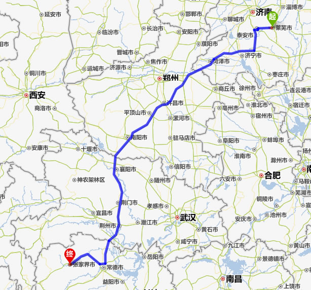 萊蕪去張家界自駕車(chē)自助游線路圖全程高速):