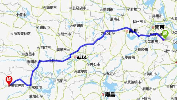 溧陽(yáng)市到張家界自駕車(chē)旅游線(xiàn)路(距離最短)