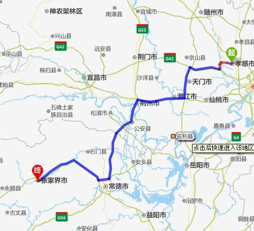 現(xiàn)在位置:張家界旅行社->交通指南->自駕車路線 -> 孝感到張家界旅游自駕車線路-孝感去張家界自己開車要多長(zhǎng)時(shí)間,有多少公里