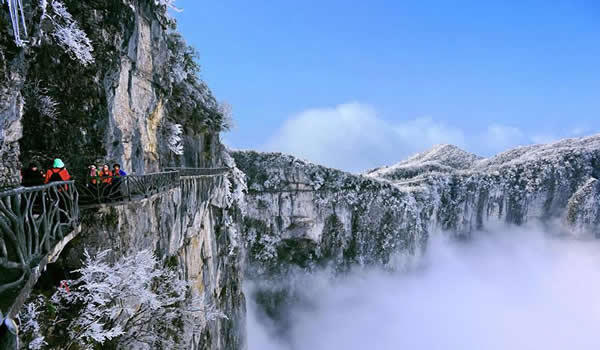 上 午: 遠觀霧色百丈峽、踏入神秘的潘多拉世界,游覽張家界核心景區(qū)(門票已含)精品游覽線——【袁家界景區(qū)】(乘百龍?zhí)焯萆闲,門票72元/人已含):袁家界風景以雄、奇、險、峻著稱,在十多華里的環(huán)山游道上,沿途景色美不勝數(shù),其中可觀賞到:電影《阿凡達》中“哈利路亞山”原型“乾坤柱”、迄今為止發(fā)現(xiàn)落差最高的天然石橋——天下第一橋(橋墩絕對高度354米)、九天玄梯、八卦圖、猿人望月、拜仙臺、迷魂臺、后花園等景點;乘景區(qū)環(huán)保車(約40分鐘)前往游覽峰林奇觀--【天子山】:天子山被譽為峰林之王,千座山峰兀立云霧中、風光旖旎、景色秀美,游覽天子閣、西海石林、御筆峰、仙女獻花、賀龍公園、石船出海、賀龍銅像等景點。